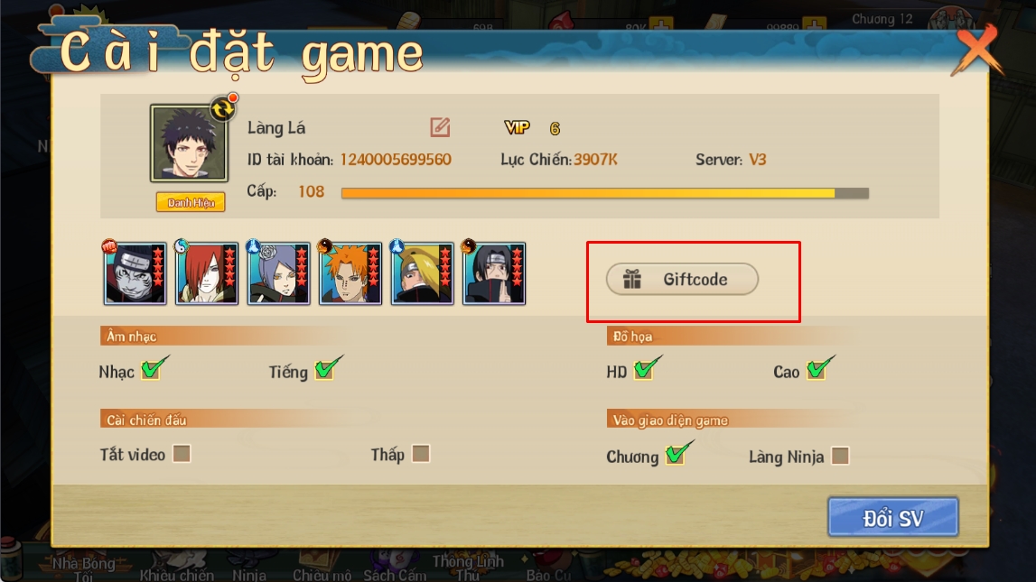 Tenten sẽ hướng dẫn chi tiết các Nhẫn Giả cách nhập Giftcode vào game, vui lòng làm theo các bước sau