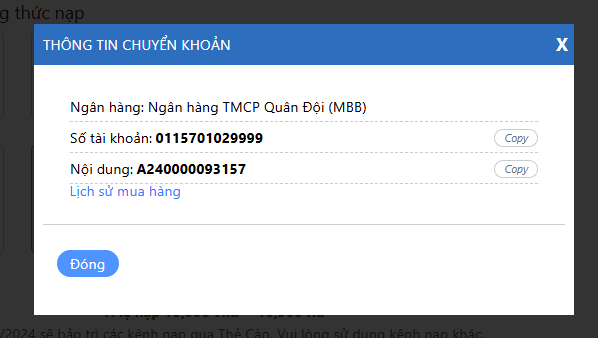- Bước 4: Tiến hành Chuyển Khoản theo các thông tin tùy theo từng ngân hàng và NỘI DUNG CHUYỂN KHOẢN.