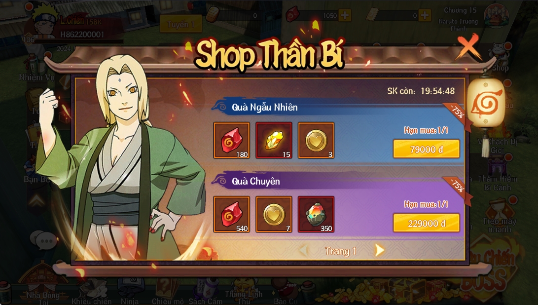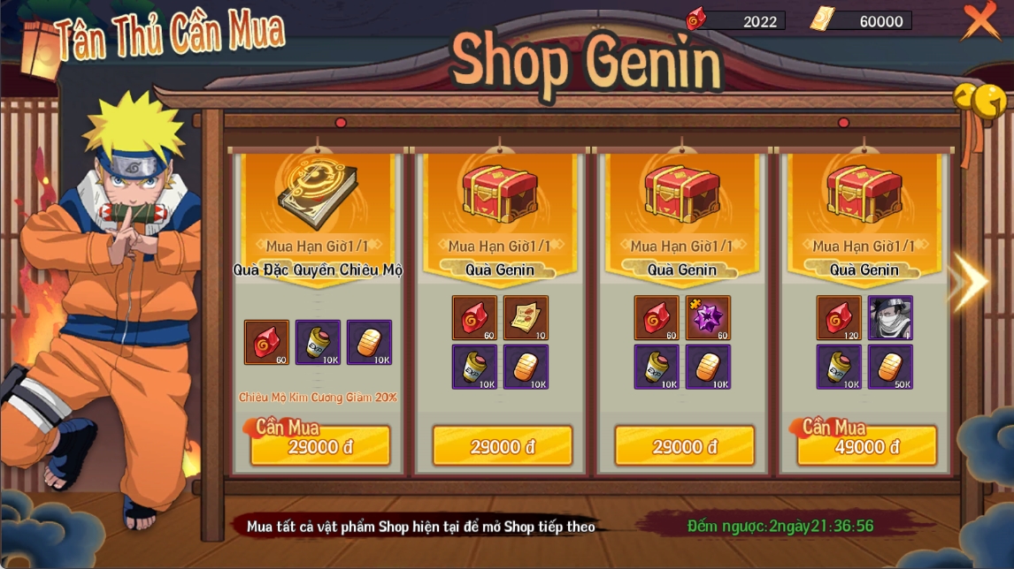 - Nhẫn giả cũng có thể mua các gói quà ưu đãi bằng Kim Cương rất thích hợp giai đoạn đầu không nên bỏ lỡ