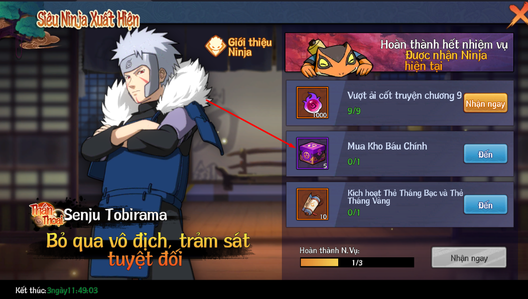 - Khi hoàn thành các điều kiện sẽ nhận ngay phần thưởng lớn là Ninja Thần Thoại Senju Tobirama