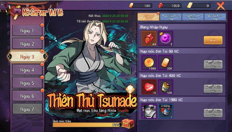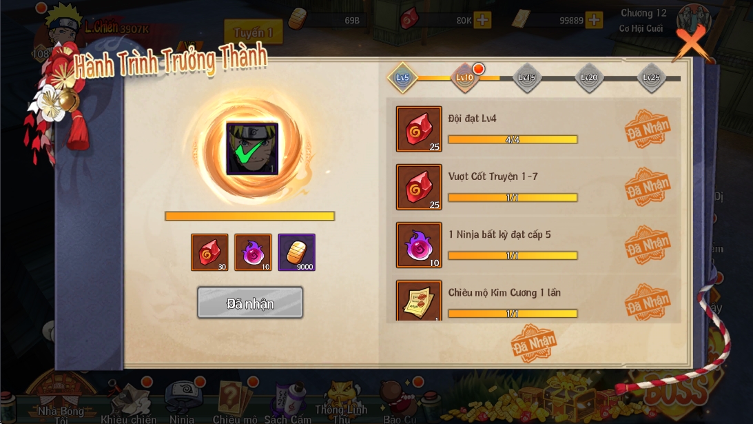 - Ngoài ra khi số nhiệm vụ hoàn thành đạt mốc sẽ nhận thêm phần thưởng là Mảnh Ninja Truyền Thuyết Tsunade