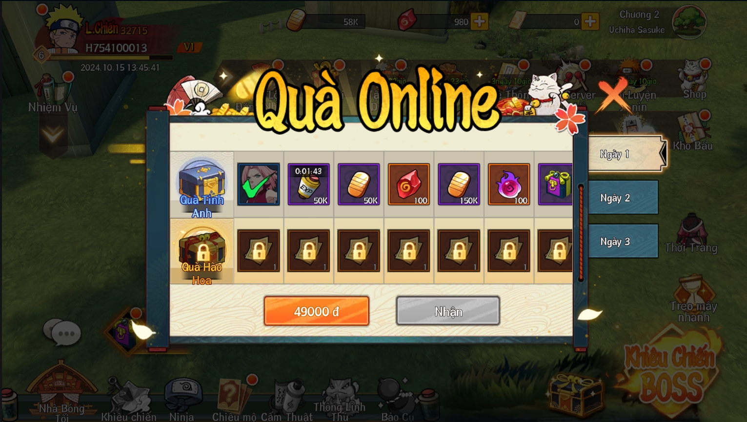 + Kích hoạt: Chỉ với 49K sẽ nhận ngay combo phần thưởng hấp dẫn và Ninja Hatake Kakashi
