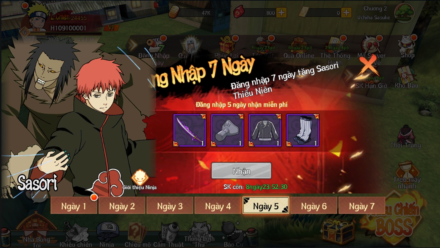 - Đăng nhập hằng ngày nhận ngay 1 Ninja Truyền Thuyết