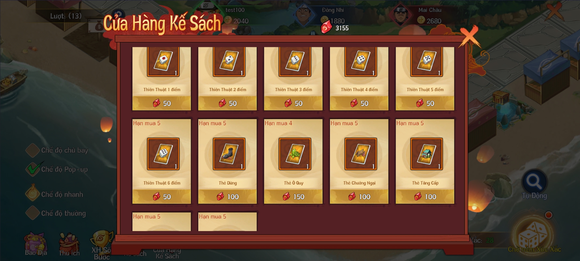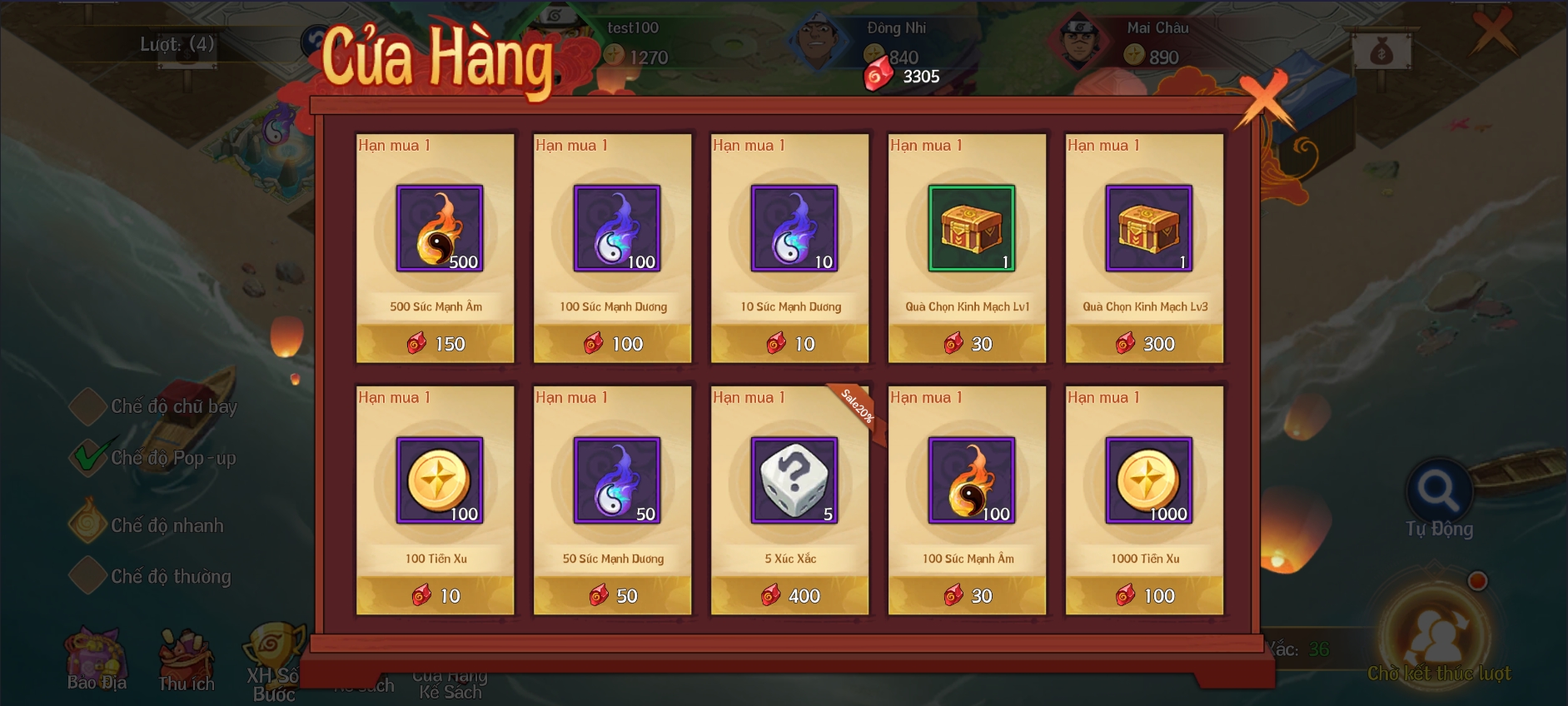 - Ngoài ra để tăng thêm tính chiến thuật thì có thêm cửa Hàng Kế Sách, là nơi để mua các lợi ích hỗ trợ khi tham gia. (có thể tham khảo thêm tại trong game)