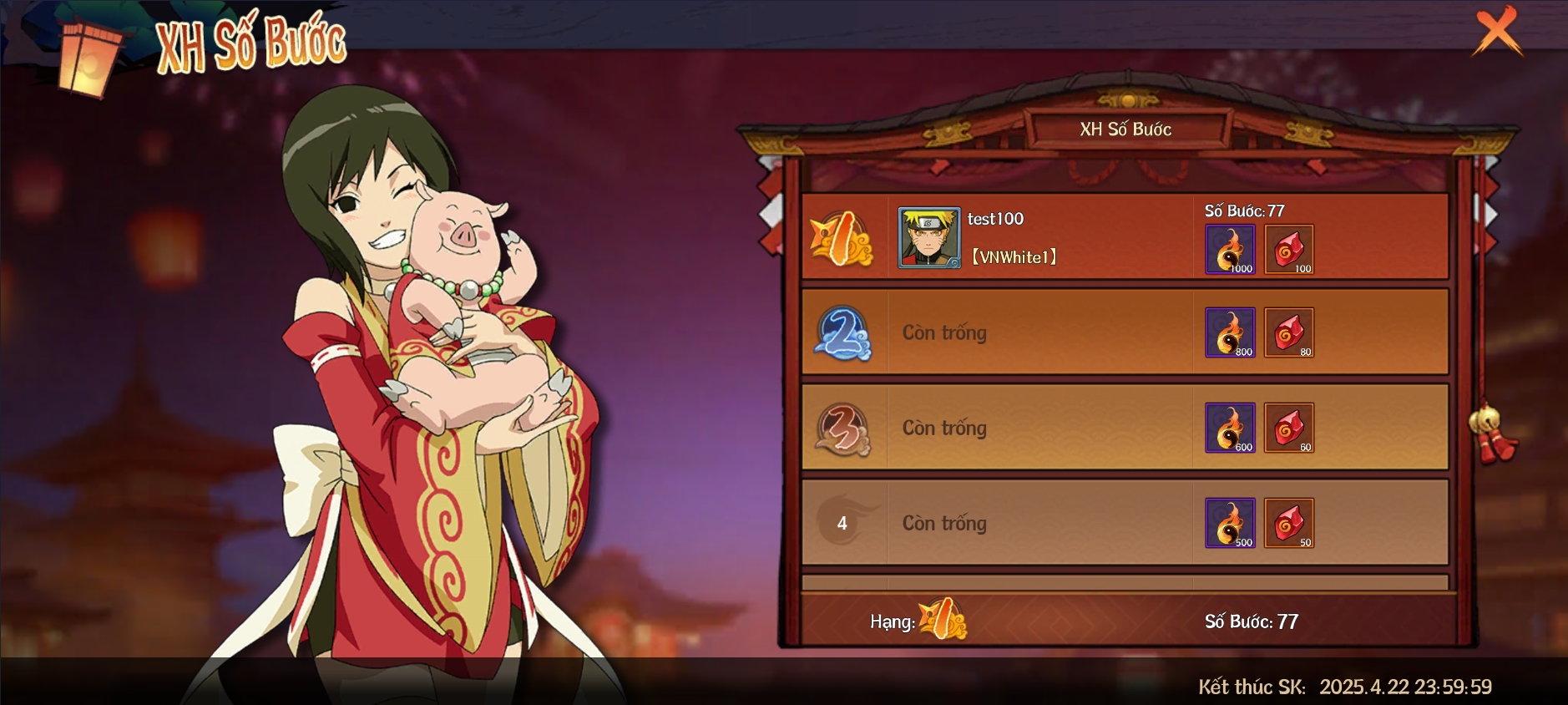 - Hằng ngày sẽ tổng kết xếp hạng số bước di chuyển của từng người trong phạm vị BXH Liên Server để phát thưởng theo thứ hạng.