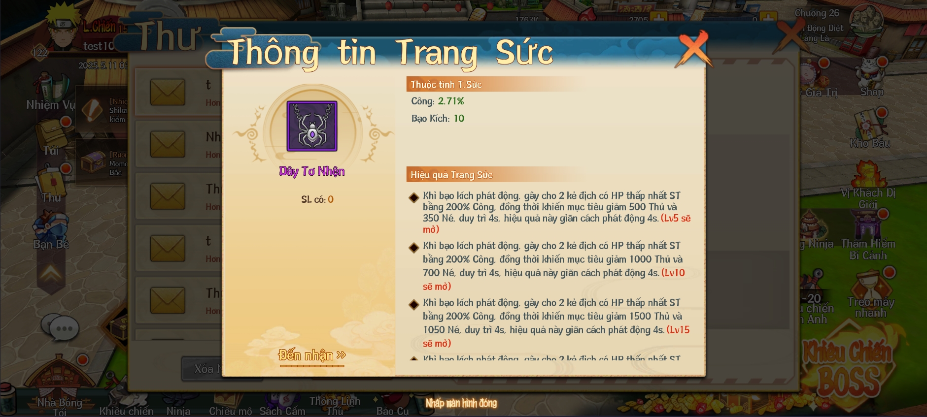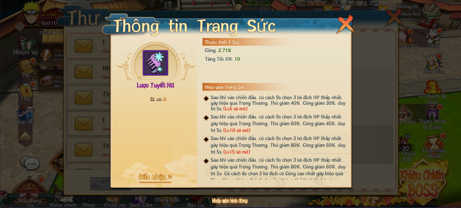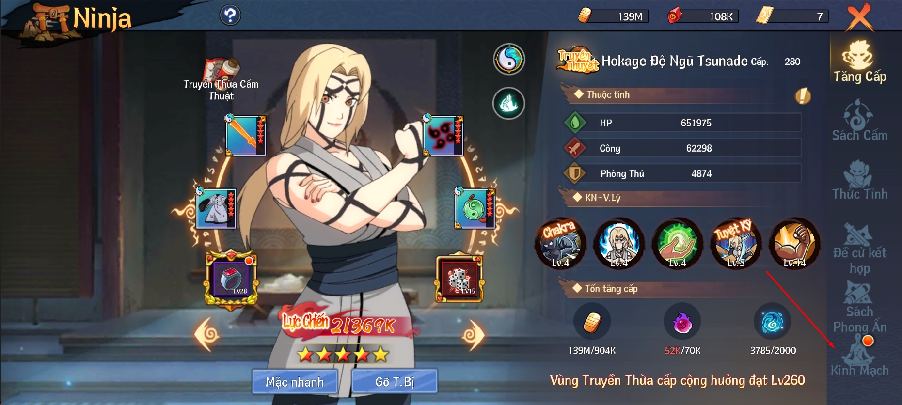 - Người chơi có thể tiến hành cài lại Kinh Mạch của 1 Ninja bất kỳ để nhận lại đạo cụ đã nâng cấp (100%)