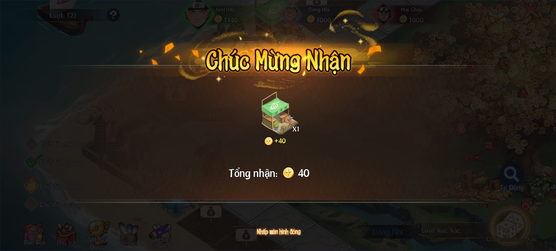 Khi dừng chân sẽ nhận ngẫu nhiên 1 thưởng đạo cụ