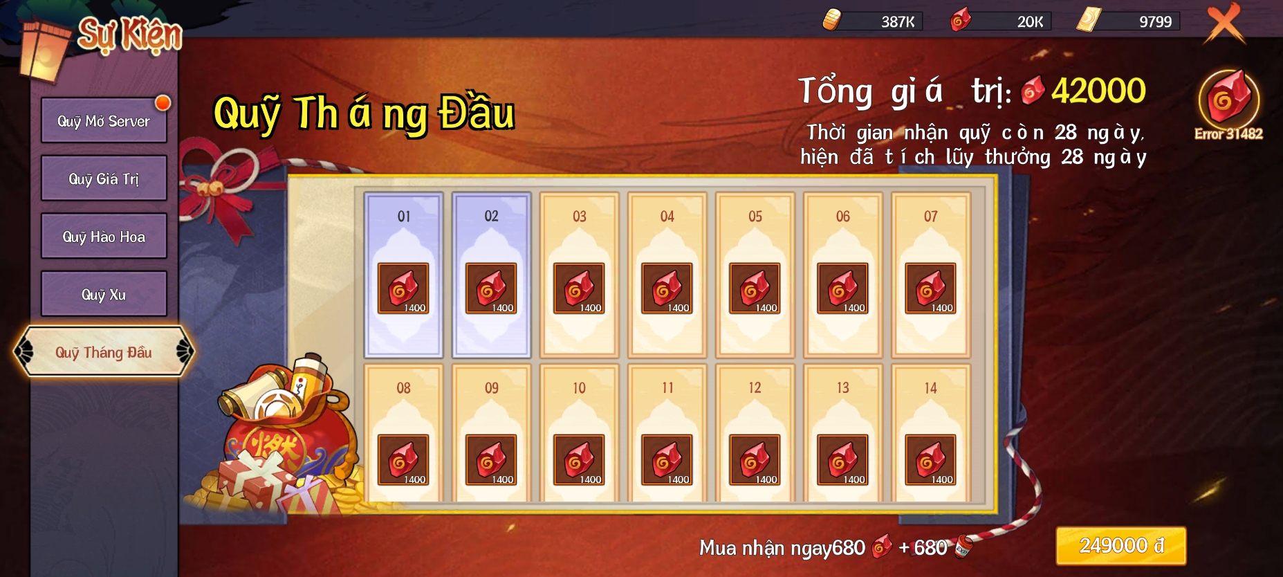1. Siêu Ninja Xuất Hiện khắc phục sự cố hiển thị khi người chơi chỉ mới mua 1 trong 2 thẻ tháng