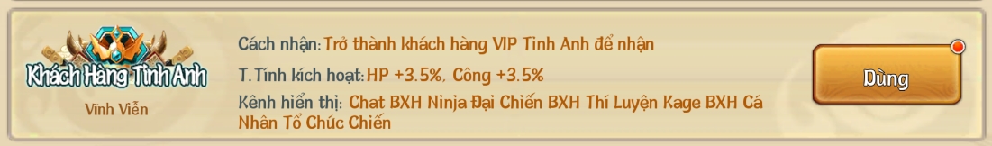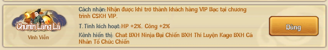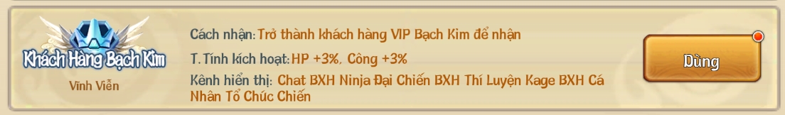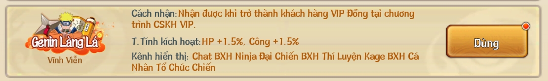 - Kỹ năng và thuộc tính sẽ áp dụng cho vị trí Ninja theo vị trí mà người chơi cài đặt