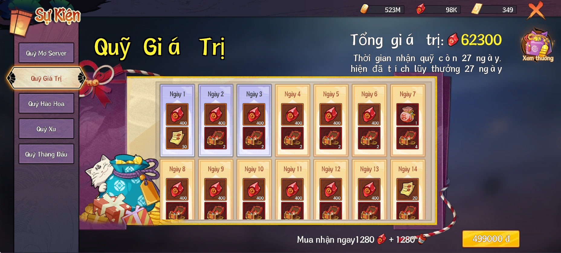 - Tối ưu hiển thị giao diện sự kiện Quỹ Gía Trị v2 Quỹ Hào Hoa rõ ràng hơn và dễ thao tác nhận thưởng hơn