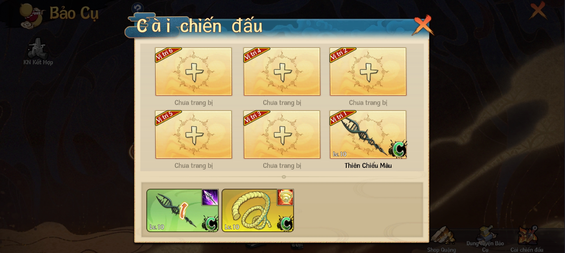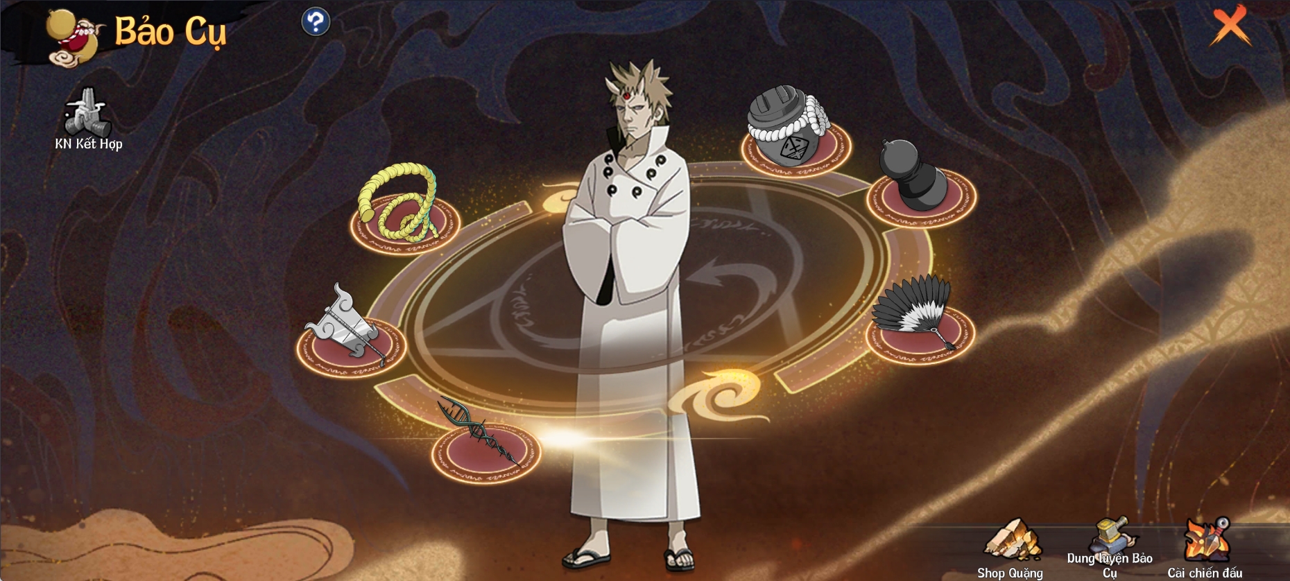- Tăng cấp Bảo Cụ để tăng thêm sức mạnh của kỹ năng Bảo Cụ đó (sử dụng tài nguyên từ tính năng Mỏ Khoáng để nâng cấp)