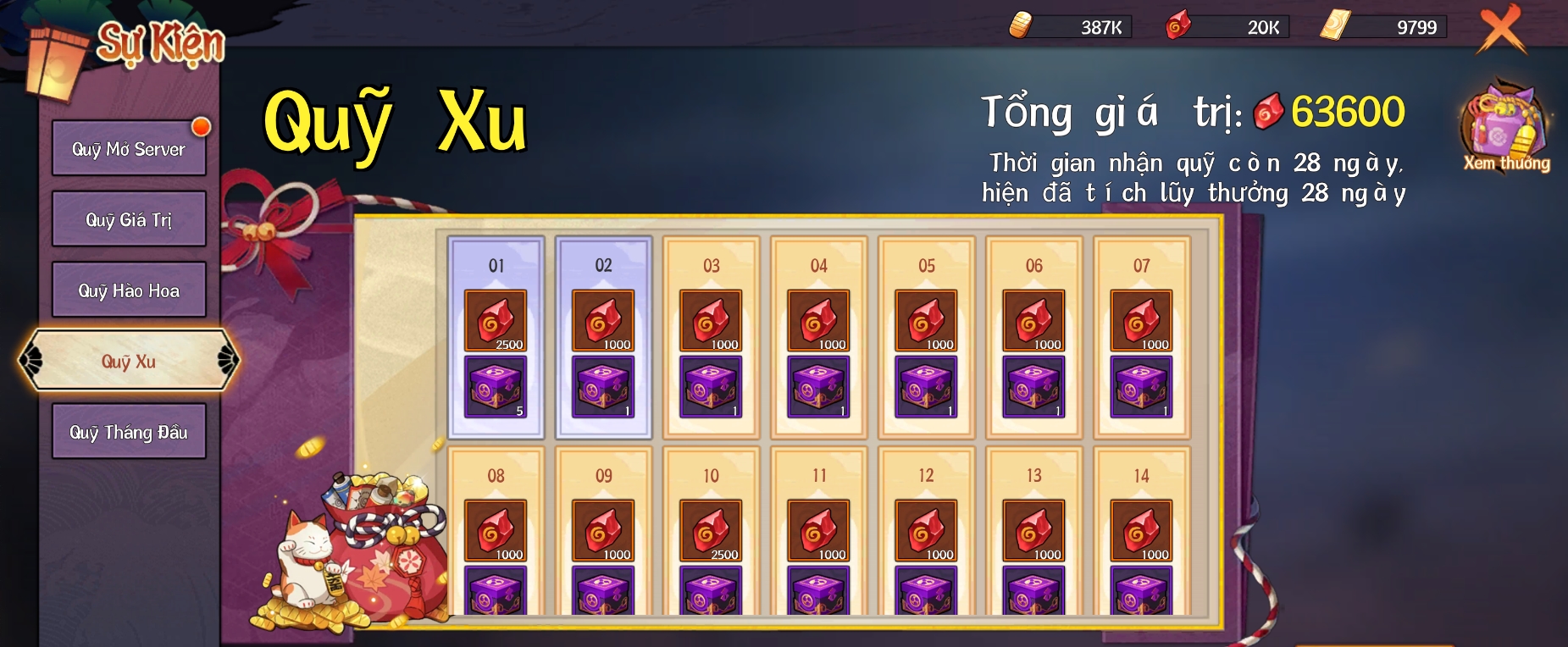 - Khi kích hoạt sẽ nhận thưởng trong 30 ngày với các đạo cụ hấp dẫn: Kim Cương và Rương Xu-Sơ