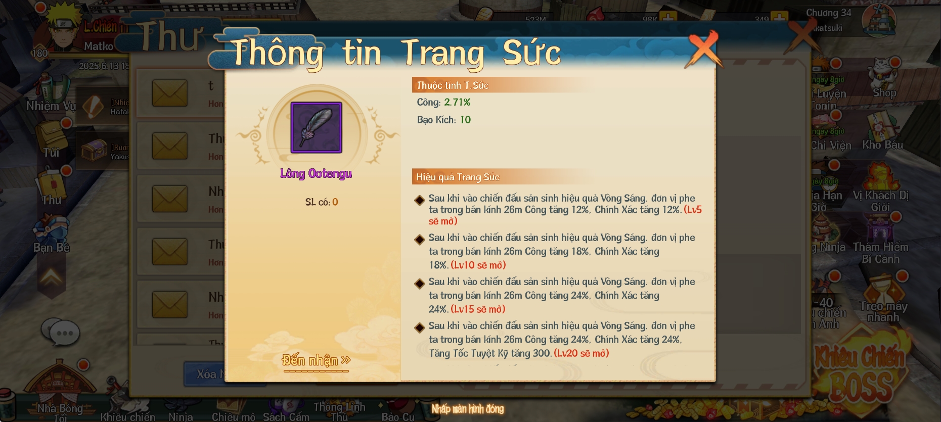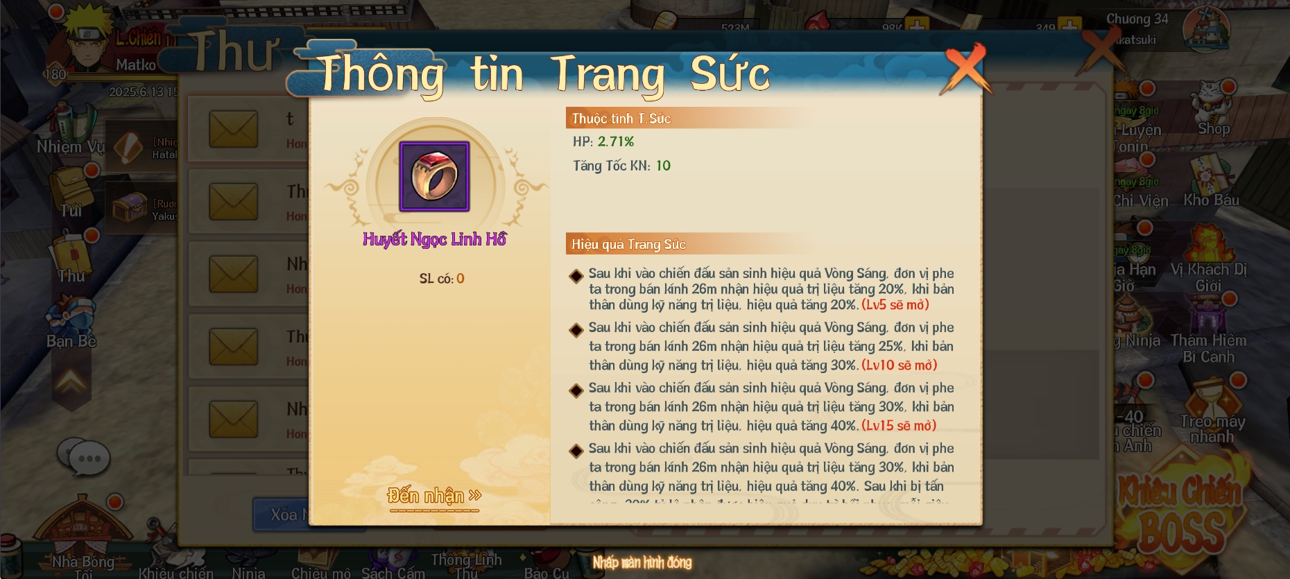Hồ Lô Đỏ | Khi HP dưới x% phát động, khi tất cả kẻ địch tung Chakra thì có x% glàm gián đoạn kẻ địch tung Chakara duy trì đến khi kết thúc trận đấu hoặc Ninja có Bảo Cụ này tử trận, mỗi trận phát động 1 lần (level 40 kích hoạt) |