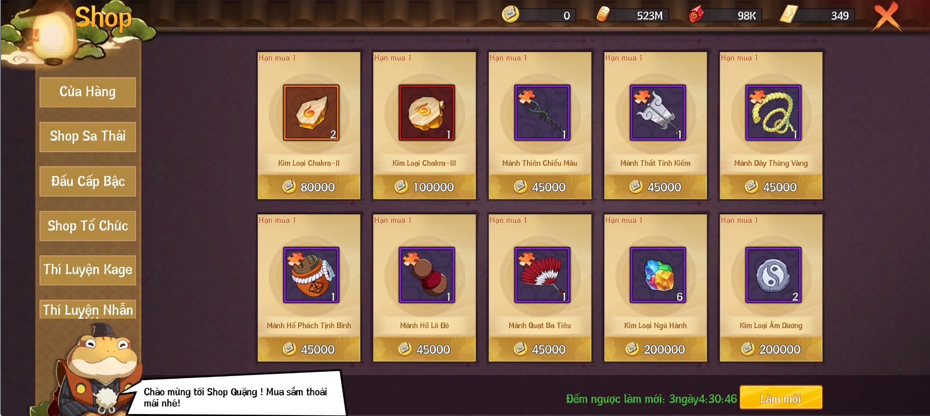 - Mảnh Bảo Cụ có thể đổi tại Shop Mỏ hoặc tham gia sự kiện