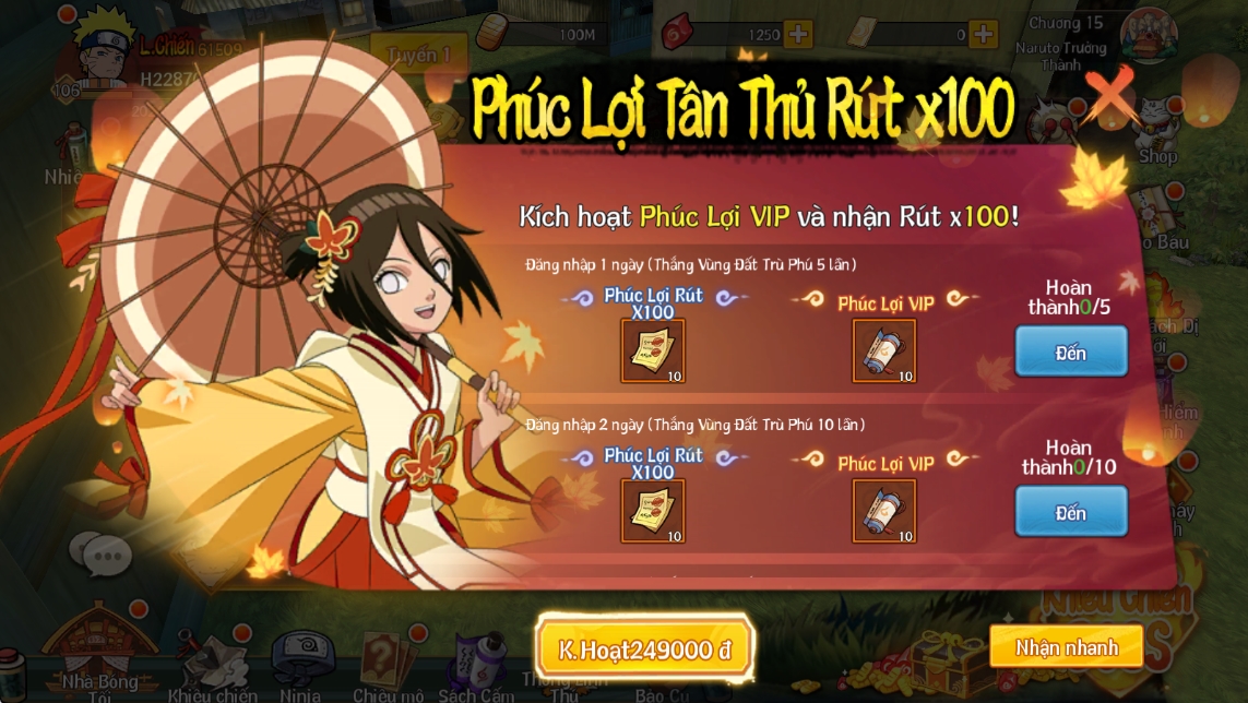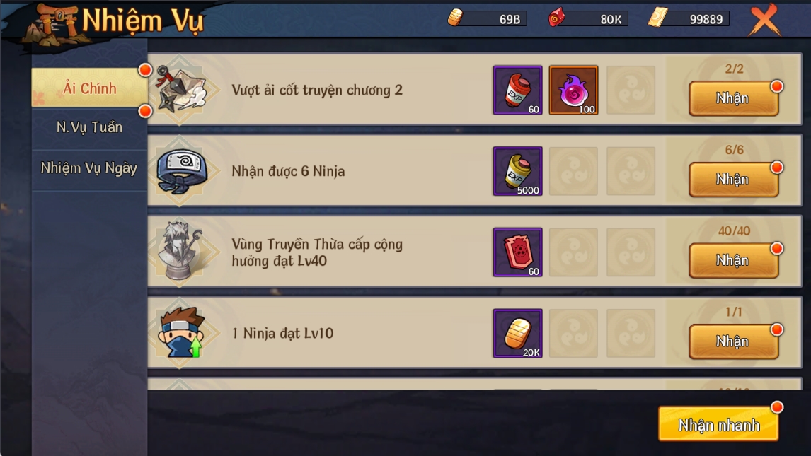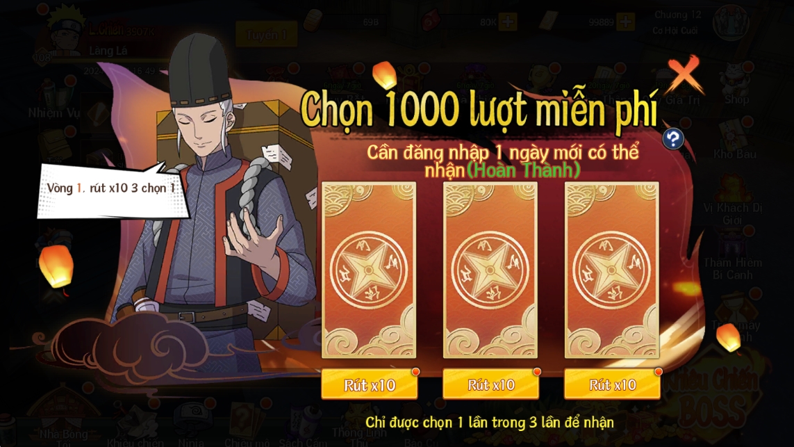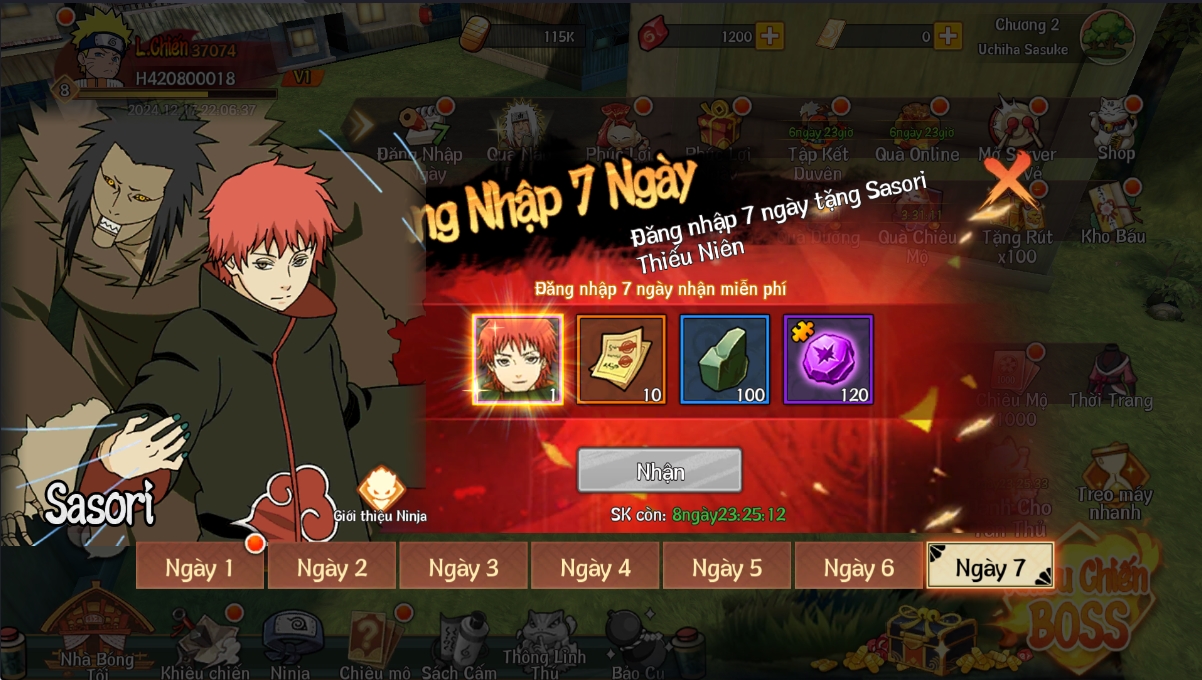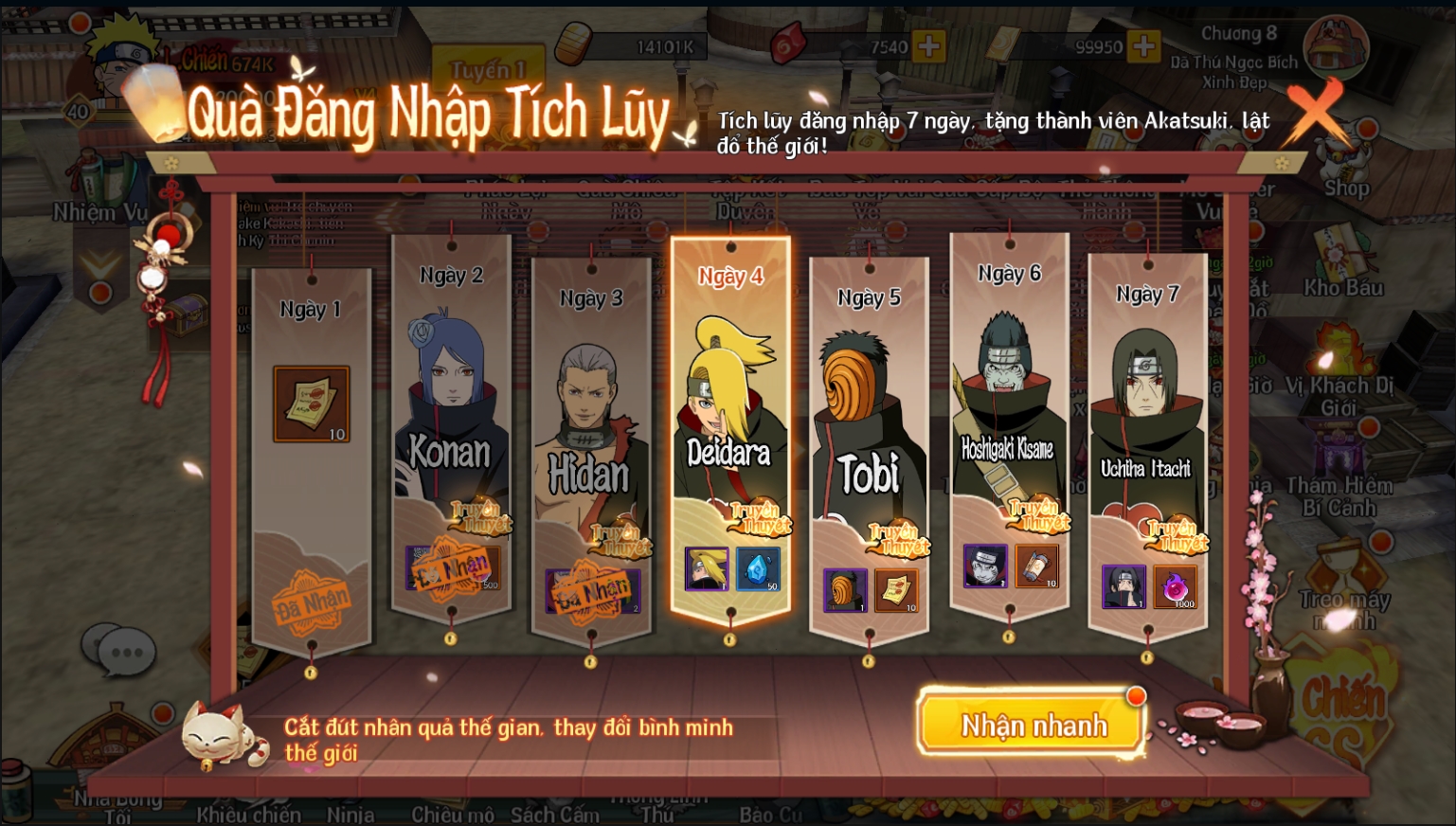 - Đăng nhập mỗi ngày nhận 1 Ninja Truyền Thuyết