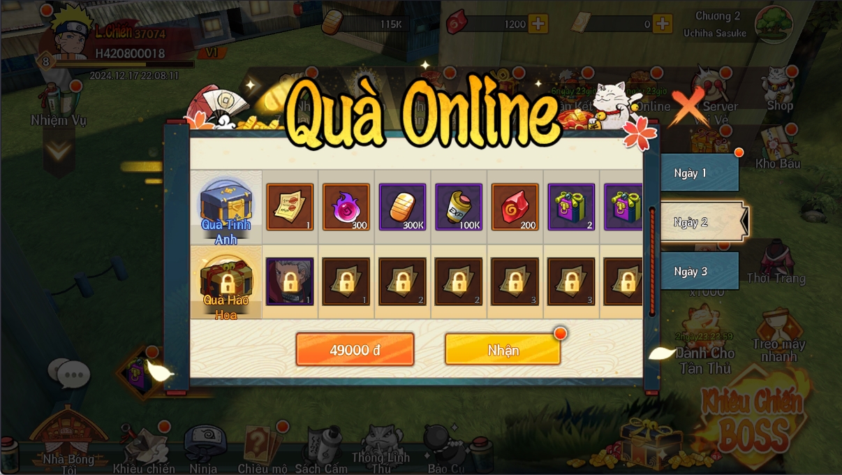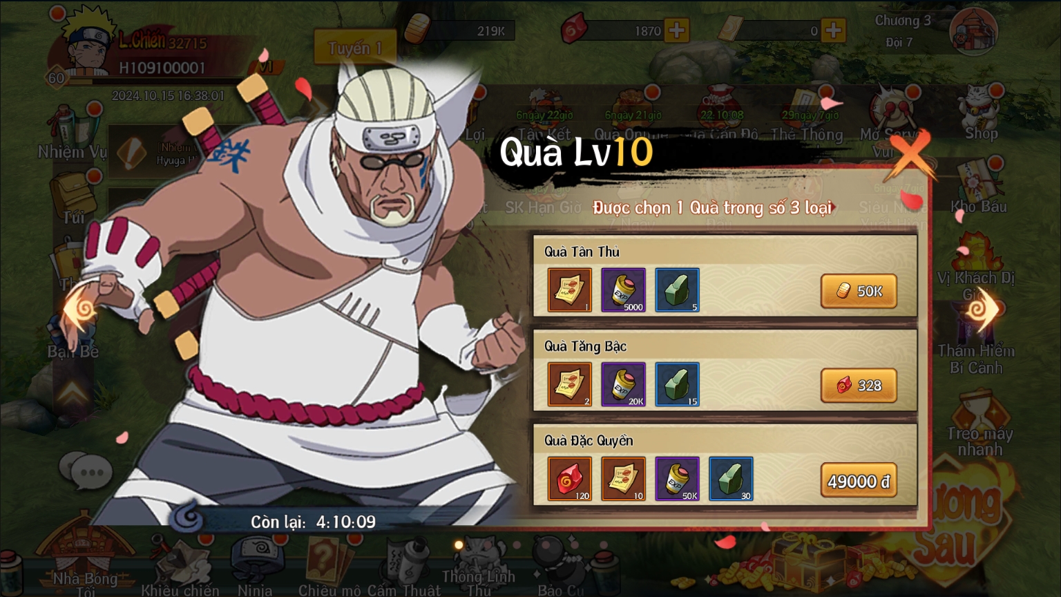 - Đặc biệt chỉ cần kích hoạt "Qùa Hào Hoa" với 49,000 vnđ sẽ nhận ngay Ninja Hatake Kakashi