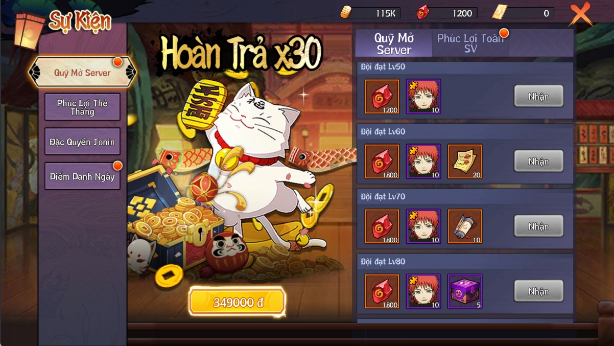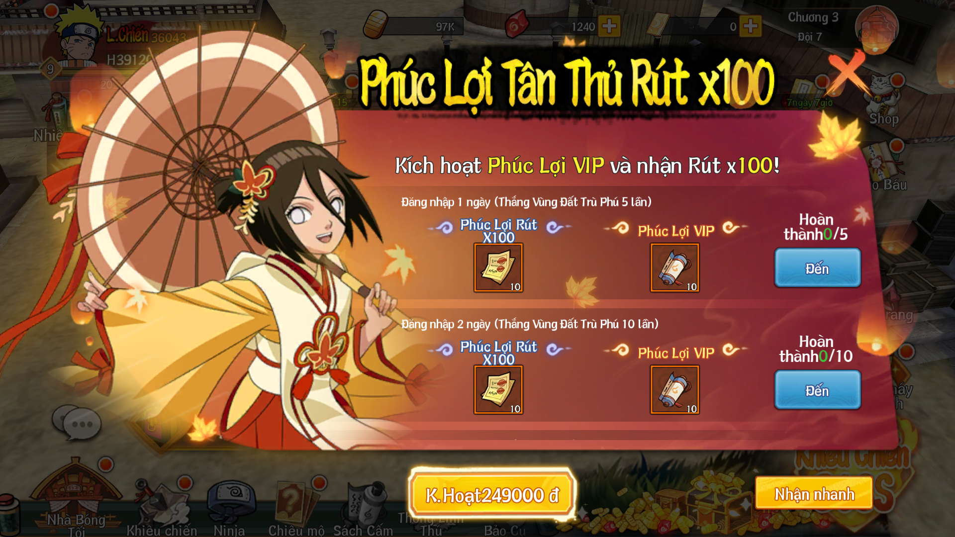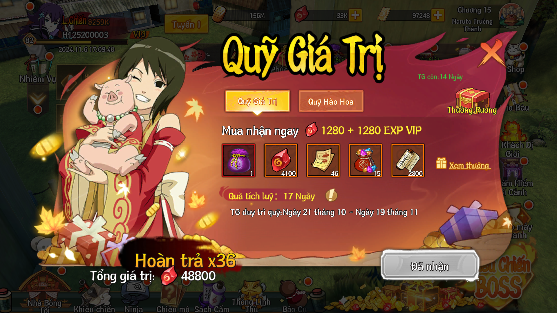 - Từ ngày 4 mở máy chủ sẽ xuất hiện thêm Quỹ Ưu Đãi, đừng bỏ lỡ nhé vì những phần quà đều rất giá trị và cẩn thiết để Nhẫn Giả định danh trên con đường trở thành Ninja thật thu