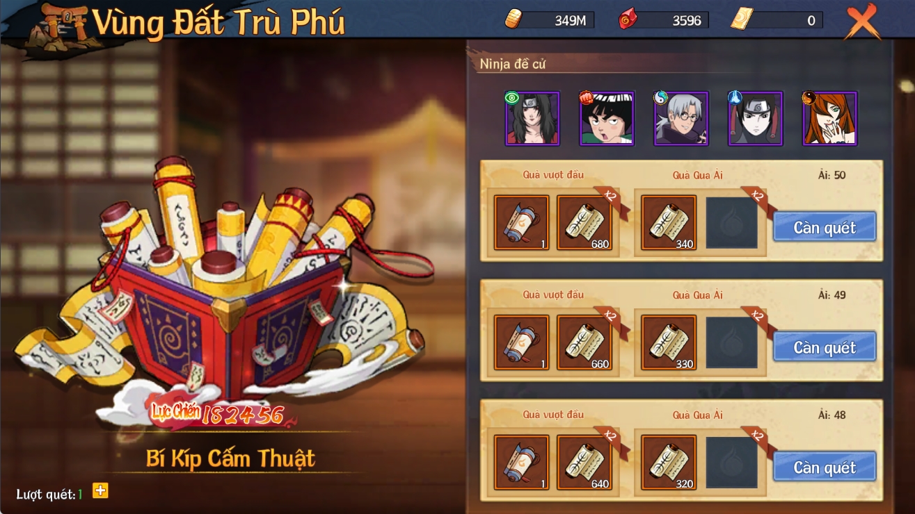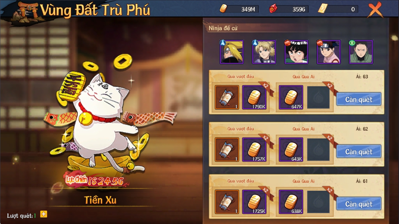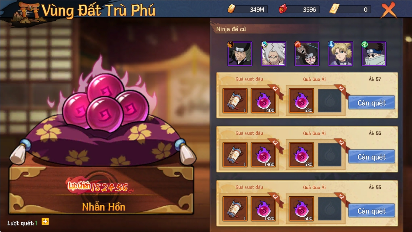 - Nếu như đã vượt qua ải trước đó có thể dùng lượt càn quét để nhận thưởng quà của ải đó.
